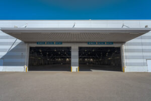 そして、荷物や機材の搬入口の360°パノラマ撮影で困った事態が発生しました。メンテナンス作業中で、シャッターが開いた状態の撮影ができなかったのです。そこで、以前撮影した通常の写真と、新しく撮影した360度画像をAffinity Photoで合成するという方法で乗り切りました。